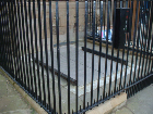 To meet the Client’s requirements, it was necessary to have the lift serving up from the Basement to an exposed courtyard at the street level with no enclosure permissible. The only solution was to have no permanent lift well at the upper level, with hydraulic trapdoors at the top of the lift well which opened when the lift needed to travel up. The car could not be guided in the usual way, as there was no structure to fix the guides to above the top level, so the car sat on top of its sling, requiring a much deeper pit below the lower level — so far so good!