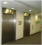 From early traffic studies, it was obvious that the six high rise and four low rise passenger lifts with conventional collective control, with ‘up’ and ‘down’ buttons on the landings, would be insufficient to handle the expectations of the buildings’ occupants. The only solution to meet the requirements of short waiting and journey times, thus avoiding frustration and lost productive time, was to link the ten lifts with a ‘destination control’ (or ‘hall call’) operating system. This has proved to be an exceptional benefit, even though not all lifts can be seen from any one point. This, however, is only one element of the project: